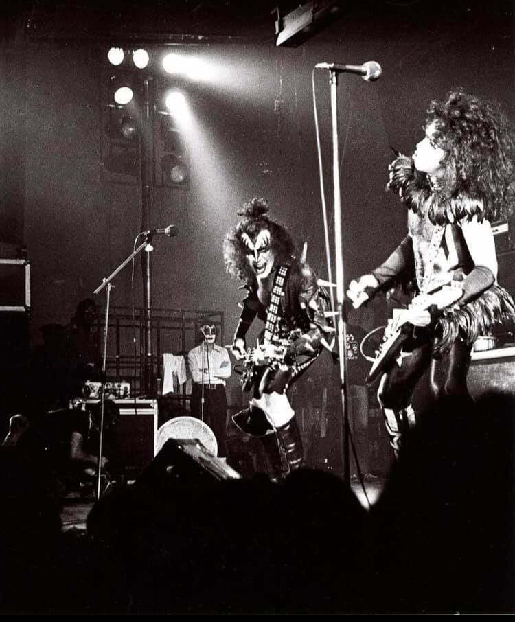Great Picture of Jim Neff, the Football coach who brought KISS to Cadillac in 1975, Standing on the side as KISS performed, with his face painted.